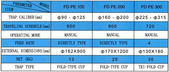 The PE pipeline does not stop loses the opening trap equipment to be suitable in the urban PE fuel gas loses the tubing nema network’s construction work. Mainly applies in presses the movement in the belt gas rangeon the PE pipeline pipe network meets the branch, affixes or replaces the valve, the replacement length of pipe, the pipeline to re-route and to transform, as well as the service, the emergency repair, rush to deal with an emergency and construction works and so on processing pipeline breakdown, avoids the economic loss which and the adverse effect which stops because of construction work loses creates to the social product life, eliminated the biography to lead is mad the operating type the safe hidden danger.